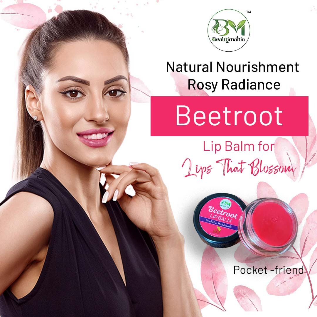 Introducing Our Beautimania Lip Balm, lip care product that will transform your lips with its lightening and nourishing properties. Enriched with beetroot and rose this lip balm is designed to reduce pigmentation, even out lip tones, and visibly lighten the lips for a brighter appearance. Made with 100% natural and it is free from harmful chemicals. Using our Beautimania lip balm is simple. Apply it directly to bare lips as a base before applying lipstick for a smooth and even application. You can also use it anytime your lips feel dry or chapped to experience instant nourishment and deep moisturization.