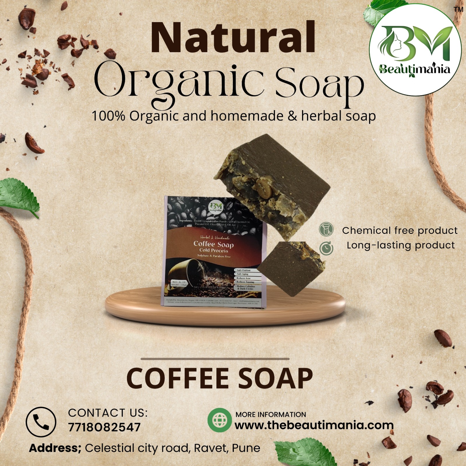 Be the first to review “Beautimania Cold Process Coffee Soap -Pack of 1 -120 gm Herbal Soap Handmade Soaps for Bath Skin Whitening and Body Cleansing Bath Soap”