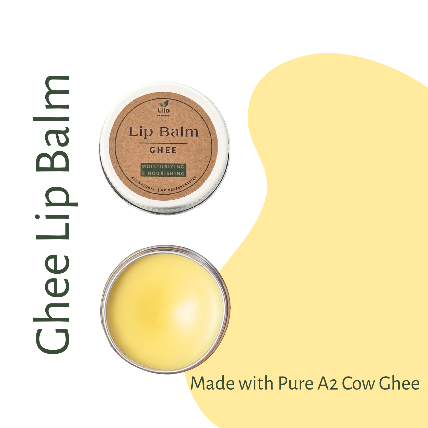 Repairing and Healing: A2 Cow Ghee, Cocoa Butter, Vitamin E Oil soothes and heal cracked, chapped lips.