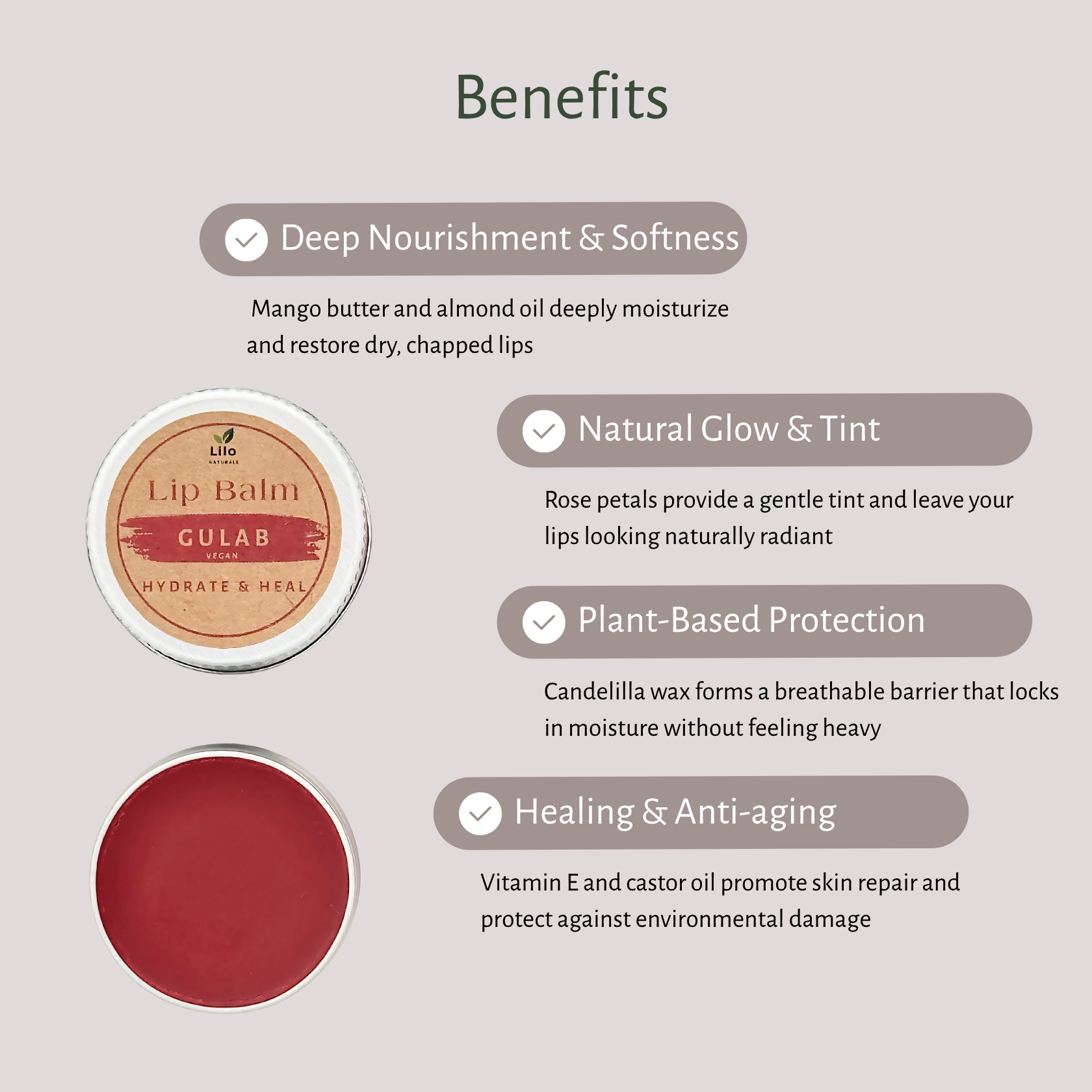 Natural Glow & Tint – Rose petals provide a gentle tint and leave your lips looking naturally radiant.