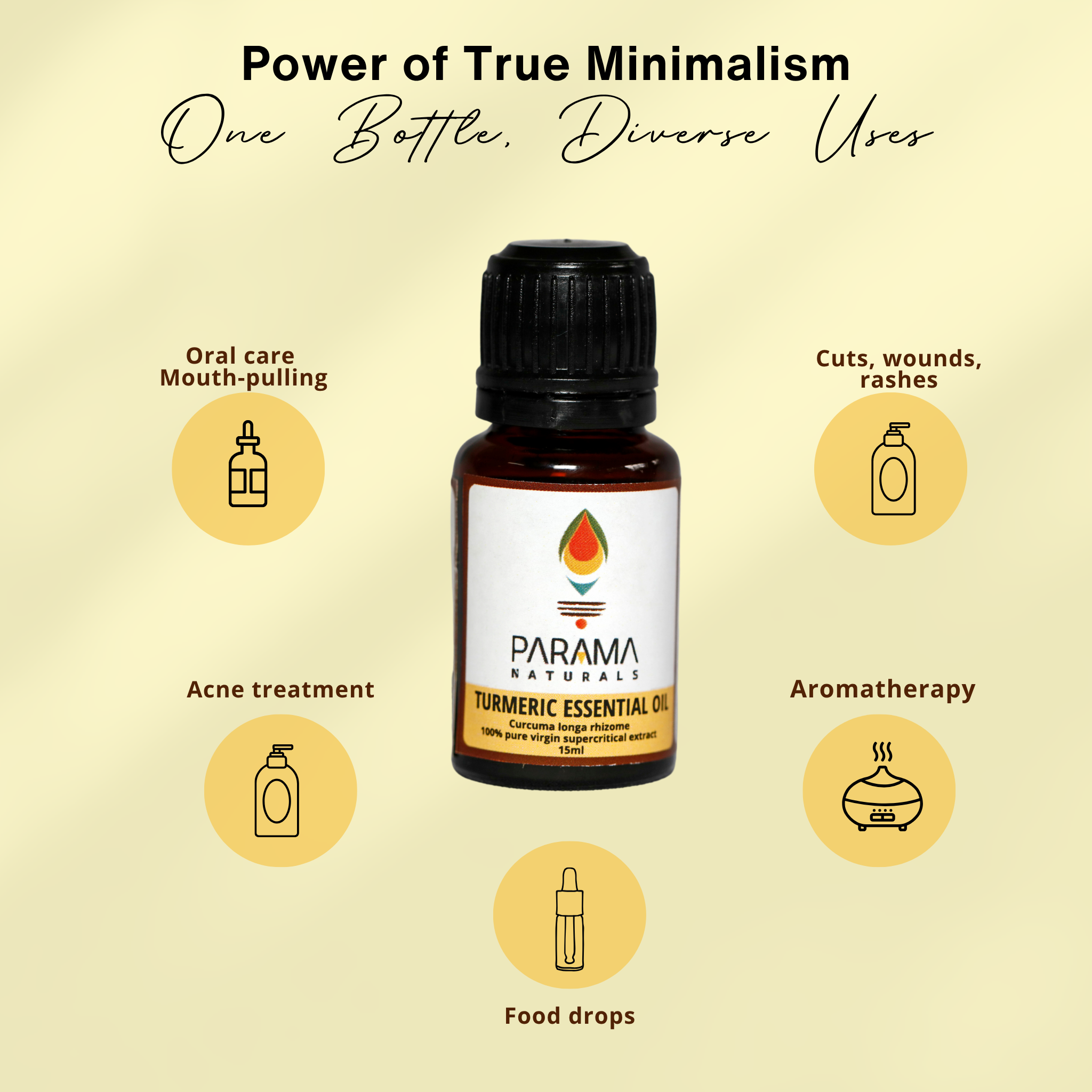 Undiluted Solvent-free Therapeutic Food-grade Anti-oxidant deep-acting Turmerones over 60% Topical Application for acne and skin issues. Aromatherapy, Oral Care, Oil Pulling