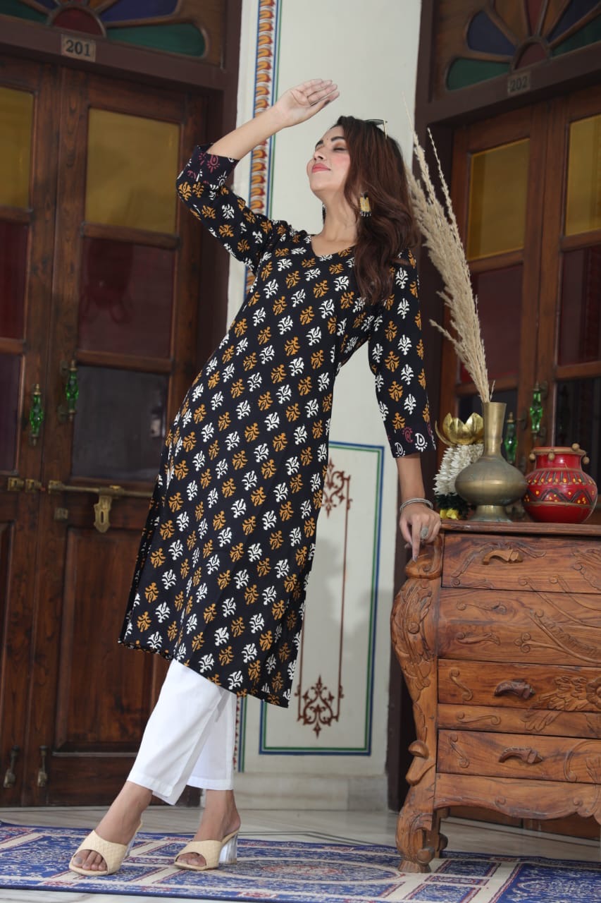 Handblock Printed Kurti Bottom Set